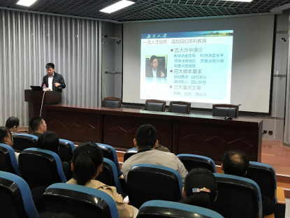 (通讯员 向晖 )为推进数理学院理学类专业认证工作,11月9日上午,南京大学物理学院教学副经理吴小山教授应邀在图书馆T2报告厅作《以专业认证为抓手,回归以本为本》的专题讲座,教务处杨萌副处长、教学质量评估与监测中心钟松副处长、机电工程学院经理徐庆华教授、数理学院副经理唐刚等部分学院领导、数理学院教师及员工参加了讲座。讲座由数理学院经理余宏生教授主持。