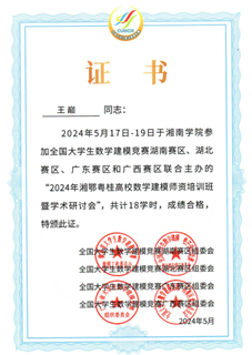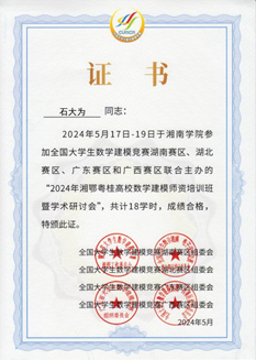 (本网消息) 为了更好地推动数学建模实践活动的开展,提高各高校数学建模教学与竞赛的水平,促进一线教师的教学和科研能力的提高,并为各校数学建模竞赛指导教师搭建一个交流与学习的平台,2024年5月17日-19日,湘鄂粤桂四省高校数学建模团队培训班暨学术研讨会于湖南省郴州召开。来自湖南、湖北、广东、广西、江西五省240余名教师参加了本次培训。公司数理学院王巅、石大为老师参加了此次培训会议。