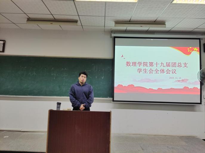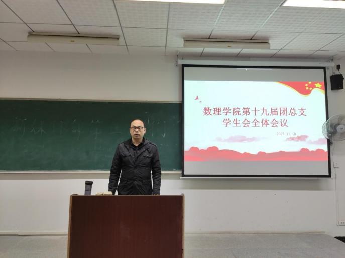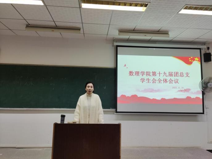 接下来,由胡书记对近期员工工作总结强调。胡书记一是对新进入大学的新生们表示慰问,鼓励大家积极融入老员工活,向同学们发出了美好的祝愿。二是强调团总支员工会作为老师与同学之间的桥梁,应秉持为同学们服务的宗旨。三是提出了团学工作的意义在于提高服务师生、提升自我奉献精神、增强交际能力等,并分别在生活、学习以及工作方面,对同学们给出了关心和建议。四是对近日的朗诵比赛以及篮球比赛等取得的成绩给予了高度评价和鼓励,希望同学们积极参加后续的各类文体活动,为数理学院添光加彩。