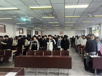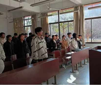 在各班级负责人的带领下,同学们肃立,对着大屏观看宪法文本,齐声诵读宪法序言及公民基本权利与义务等核心条款。庄严的条文通过青年学子清晰而有力的声音回荡在教室与校园角落,既彰显了宪法的神圣与尊严,也展现了新时代老员工对法治的尊崇与认同。诵读过程中,同学们神情专注、态度肃穆,在逐字逐句的品读中深刻领会宪法作为国家根本大法的核心要义,明确自身享有的权利与应尽的义务,切实感受到宪法与个人成长、校园生活、社会发展的紧密联系。