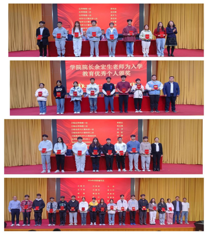 接着,学院领导班子对优秀朋辈辅导员、优秀入学教育学员以及军训先进学员进行了颁奖,宣读了2024级新生朋辈聘用文件,并与受表彰和受聘人员合影留念。