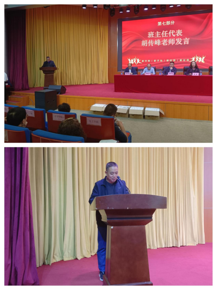 2024级信息与计算科学3班班主任胡传峰老师代表班主任发言,寄语新生要 “勿以善小而不为,勿以恶小而为之”。胡老师指出,品德是学习之根本,只有拥有正确价值观和道德的员工,才能成为社会和国家的中流砥柱。此外,胡老师阐述了理想的重要性,如同前行路上的照明灯和长途跋涉的干粮,一个有远大理想的人,能走得更远更久。他还以数理学院历年努力拼搏的学姐学长为例,希望新生向他们学习,不断提升自己。