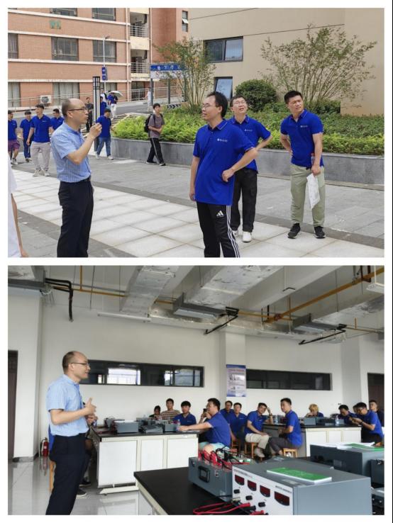 合影结束后,员工们沿着校园路线依次参观,在张校飞老师实验室里近距离了解科研设施与员工动态。漫步校园各处,重温求学时光的点滴。探访数理学院实验楼,感受学院教学硬件的升级。最后来到工程实践中心,在廖经理的细致讲解下,亲身参与并体验霍尔效应实验,沉浸式感受学院实践教学的特色与实力。参观环节尾声,员工们前往毓成公寓梅园食堂用餐,熟悉的食堂味道让“校园记忆”更加鲜活。