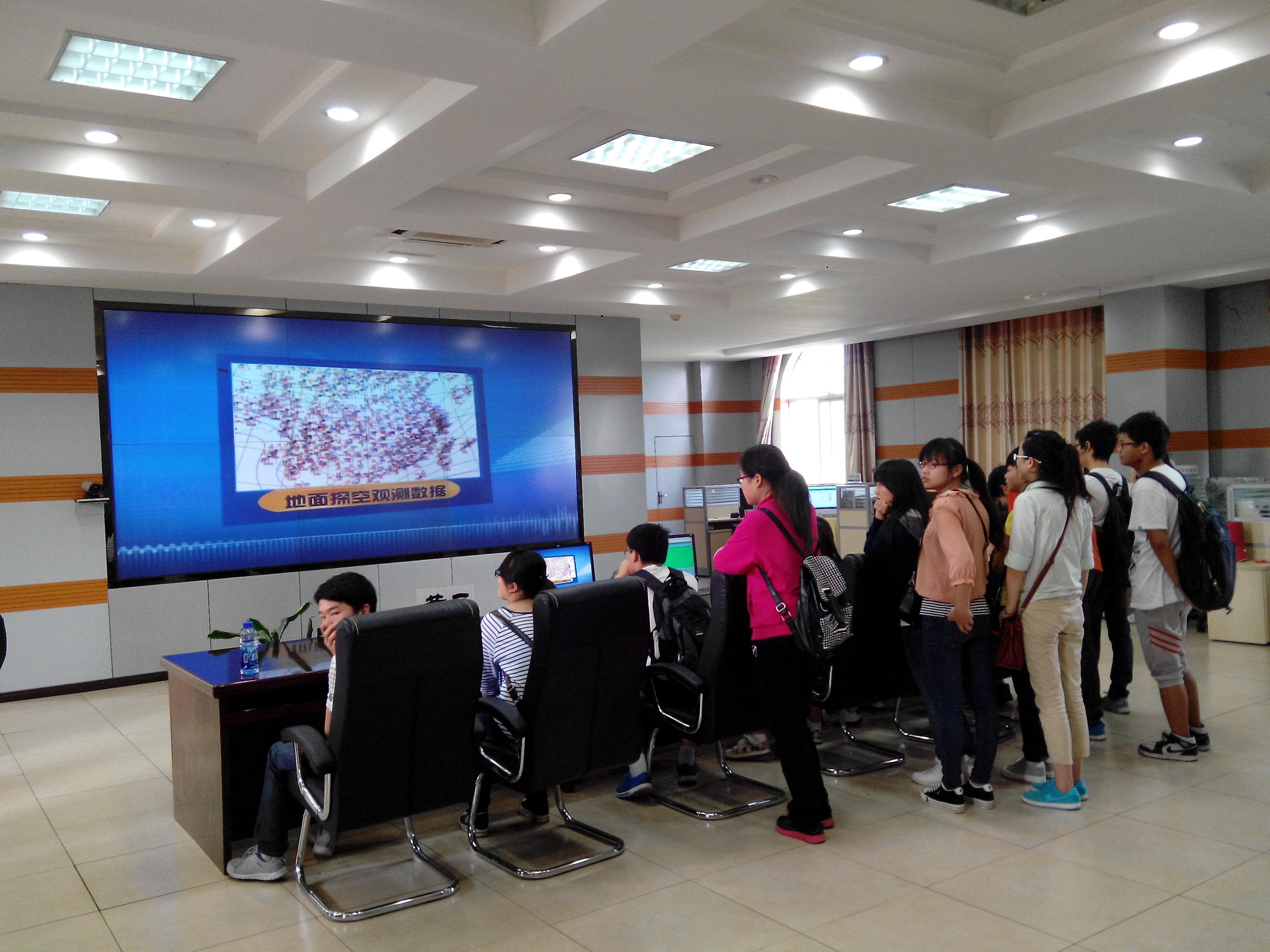 在气象台同志的指引下,首先一场关于天气预报制作流程、气象灾害常见预警分析、信息收集和图像处理等方面知识的讲座引起了同学们的好奇心,然后在气象台同志带领员工参观了有关天气信息收集的仪器。面对这些仪器,同学们表现出了对知识的渴望与热情,纷纷向相关的技术人员请教各种各样的问题。